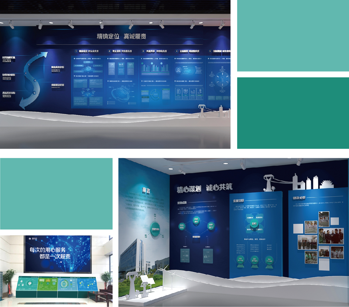 户外以长廊的形式展示中心的愿景与目标,对员工产生激励;在大厅展示对中心以“透明服务”为核心的社会履责的整体情况和开展模式进行介绍;打造中心展厅,突出展现社会履责的五大板块以及供电中心的各个业务与社会履责的结合,体现中心在社会履责上的工作与价值。